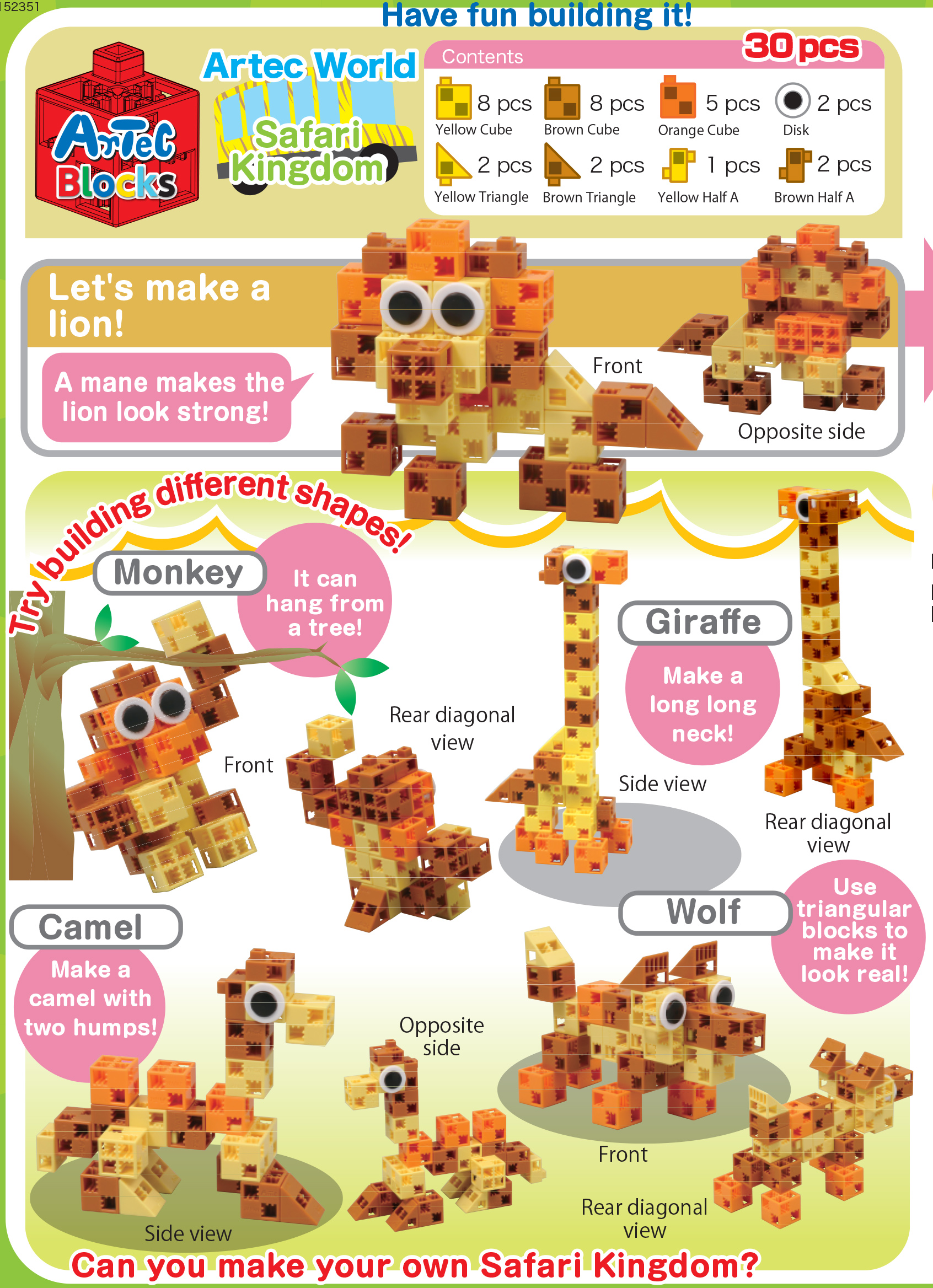 Số chi tiết: 30 chi tiết và sách hướng dẫn đầy đủ màu sắc hướng dẫn từng bước về cách xây dựng năm mô hình khác nhau.