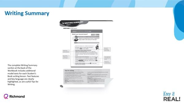 Keep it REAL! là một khóa học sáu cấp độ có tính trực quan cao, đầy thú vị dành cho người học tiếng Anh là người lớn và thanh thiếu niên, cung cấp 4 đến 6 giờ tài liệu học cốt lõi cho một tuần, và được bổ sung bởi vô số tài nguyên kỹ thuật số và in ấn.